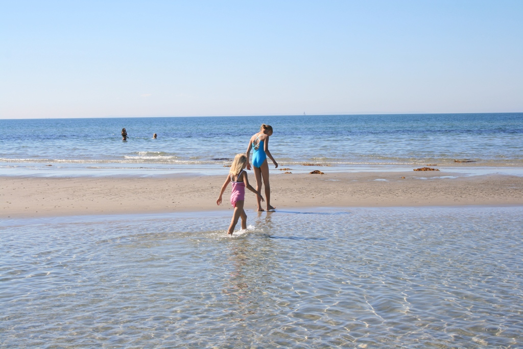 Badestrendene er langgrunne og barnevennlige, deilig myk skjellsand og god temperatur i sjøen på denne årstiden. Totalt har øya 25 kilometer strender, så det blir aldri trangt om plassen, selv om 100 000 turister besøker øya årlig (antall fastboende er 2000).